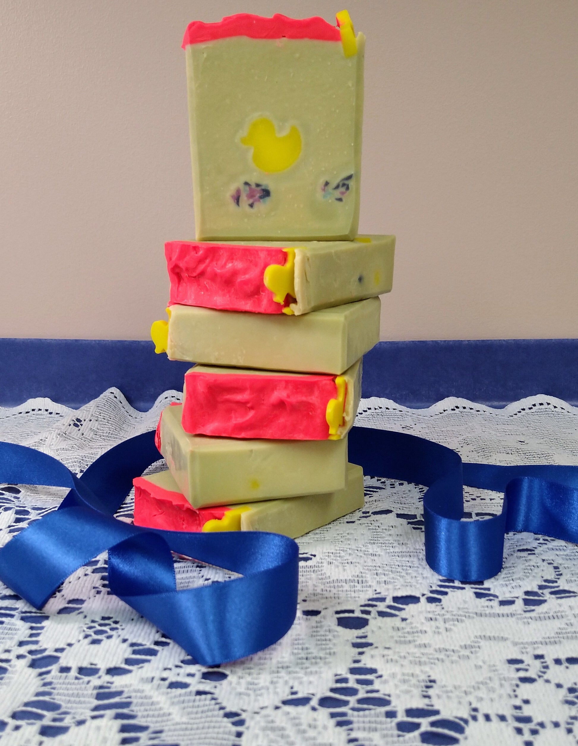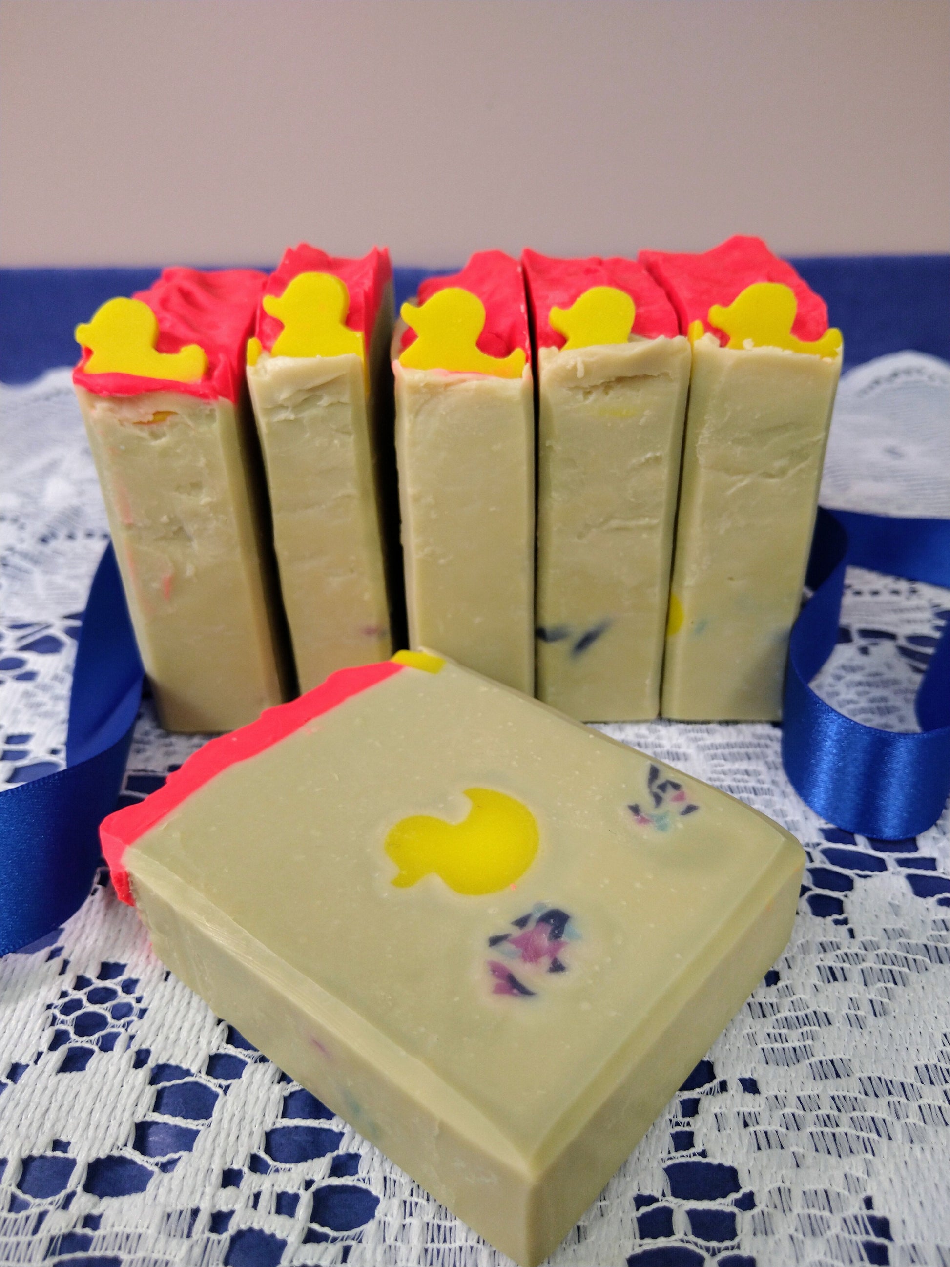 The duckling goes all the way trough the soap.
