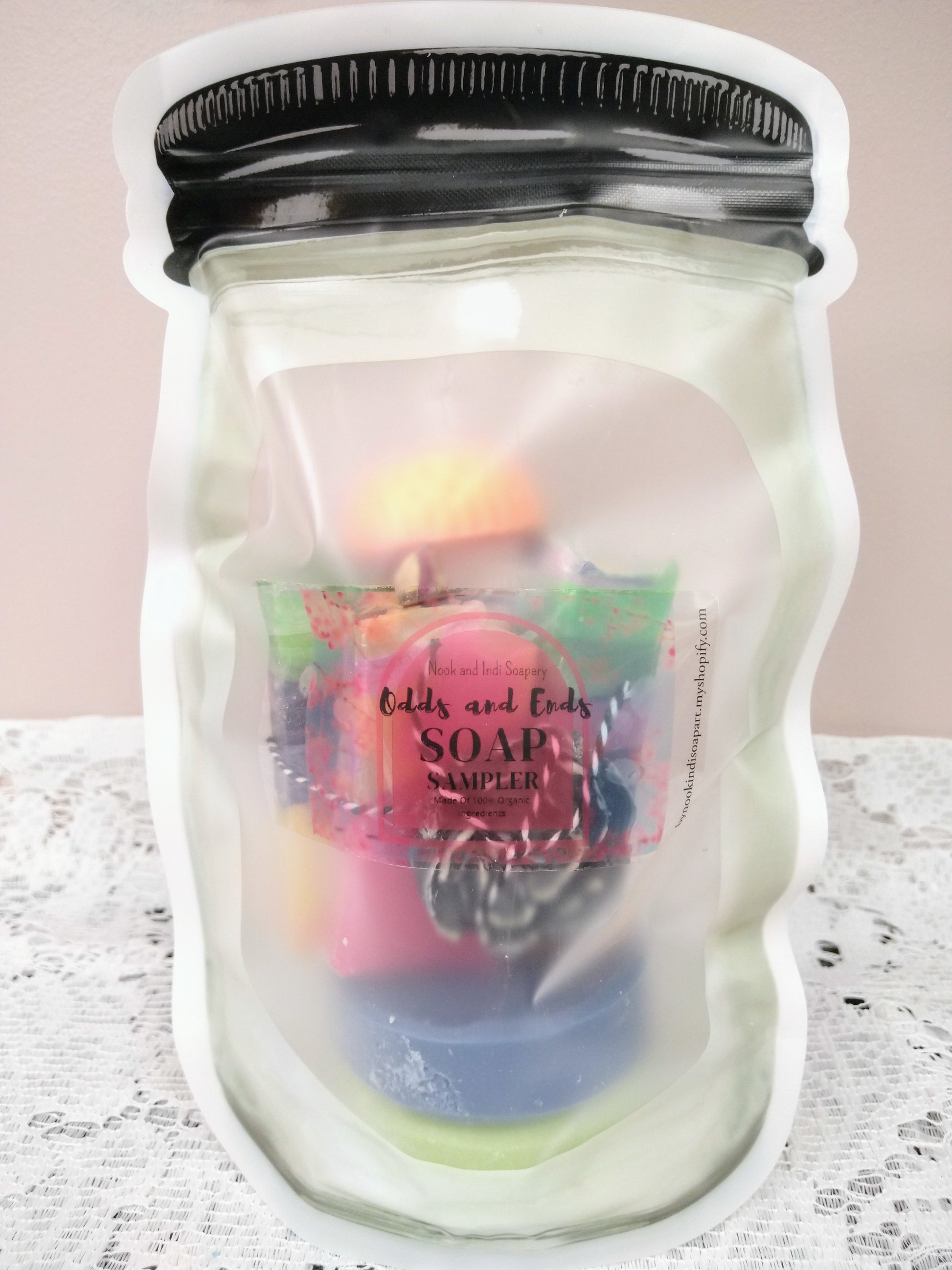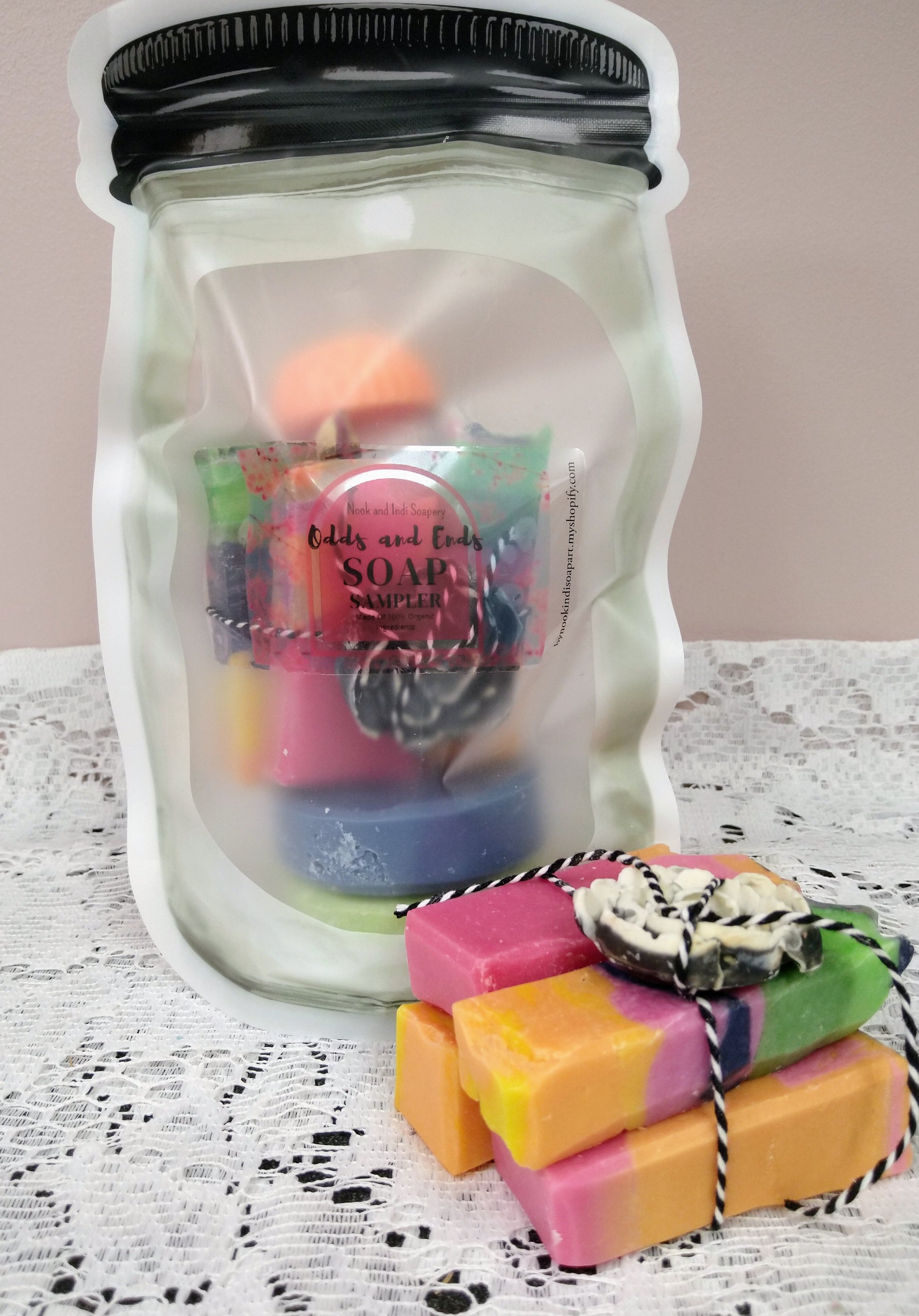 Soap odds & Ends are the ends of bars, extra soap batter that got poured into a smaller mold, designs that didn´t quite look the way I wanted, or pieces of small batches that I just made for fun!