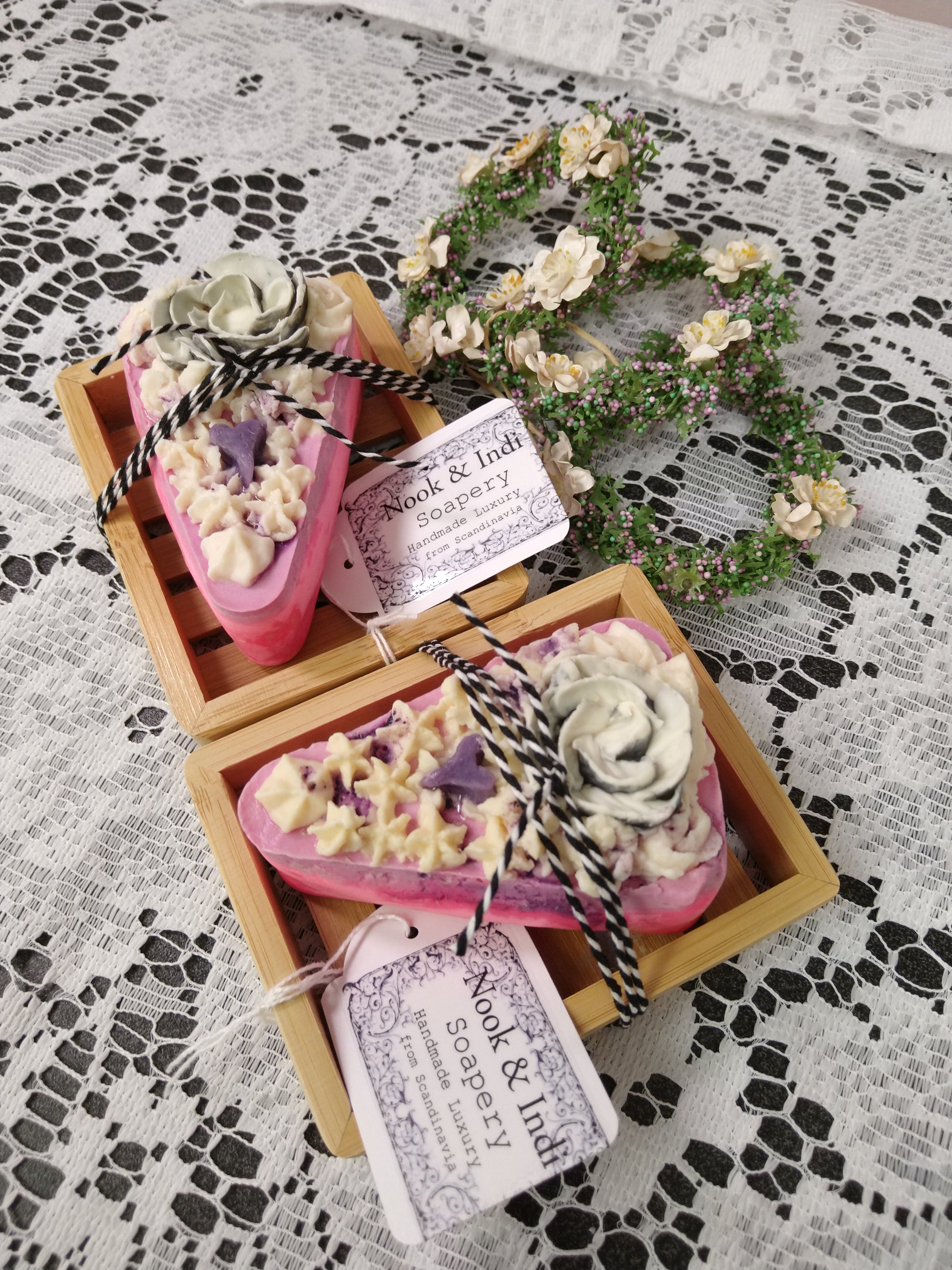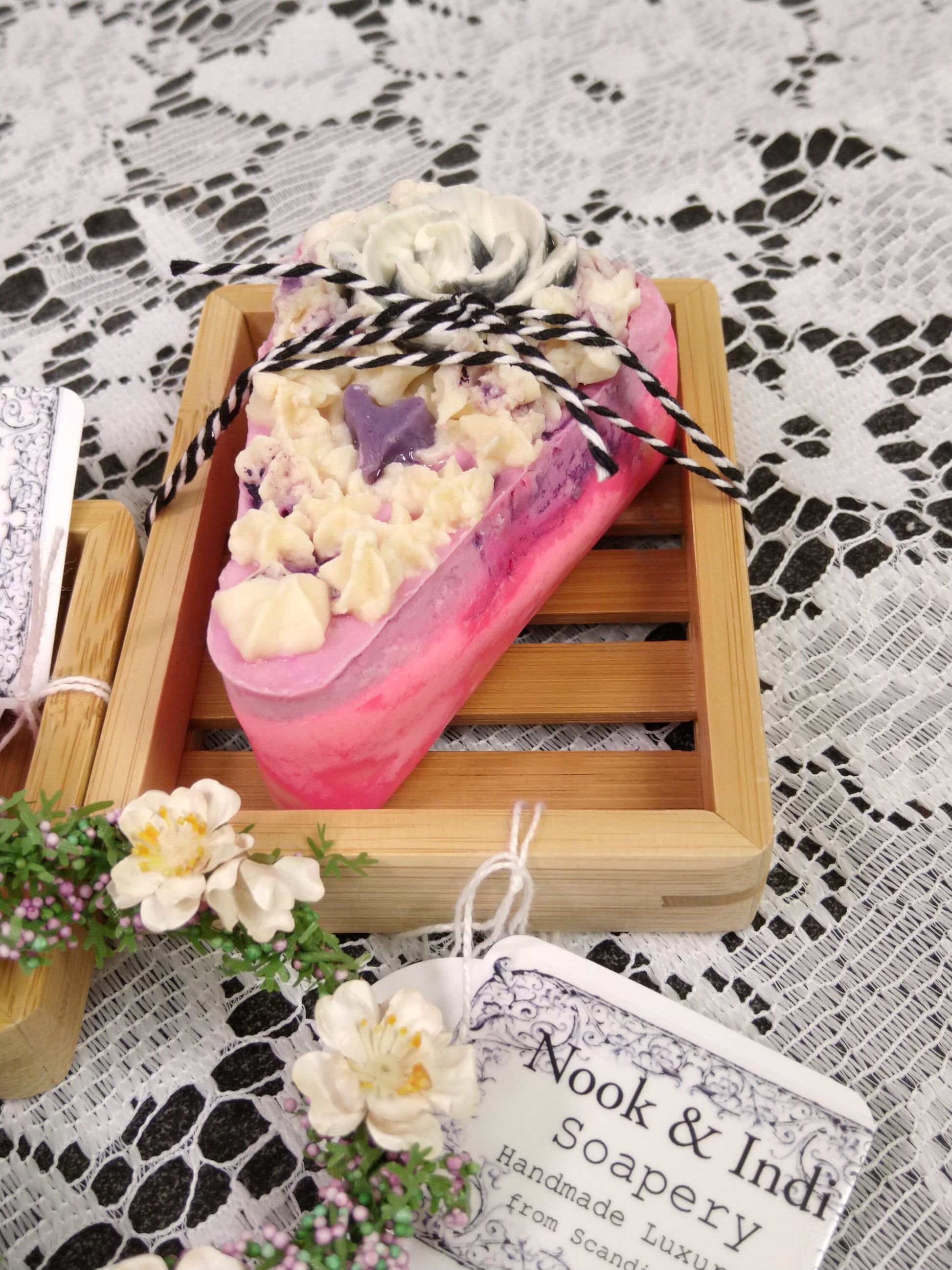 A real soap that looks like a cake. Can it get any better then this! I really don´t think so. Every little detail on the soap is made by hand and the soap will be delivered on a bamboo soap tray.